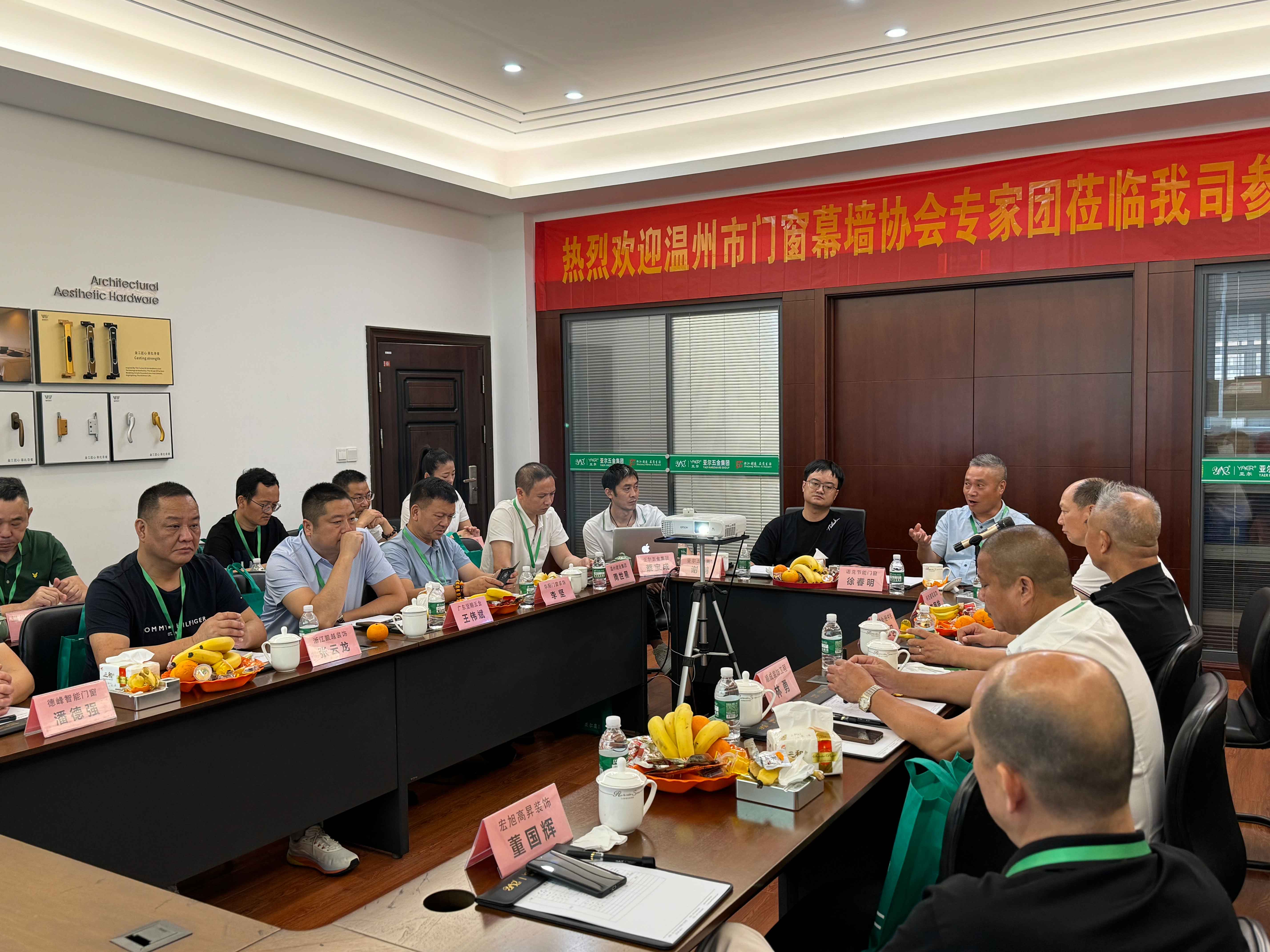 2024 年 6 月 20 日下午三點(diǎn)整,溫州市門(mén)窗幕墻協(xié)會(huì)四屆三次理事會(huì)議在亞爾五金集團(tuán)有限公司(瑞安市塘下鎮(zhèn)汽摩配產(chǎn)業(yè)基地登峰路 289-1 號(hào))隆重舉行。